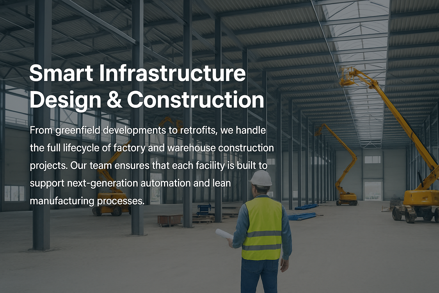 Whether you're launching a new facility on a greenfield site or upgrading an existing operation, our team ensures your infrastructure is built to support next-generation automation, data-driven operations, and lean manufacturing workflows—from day one.